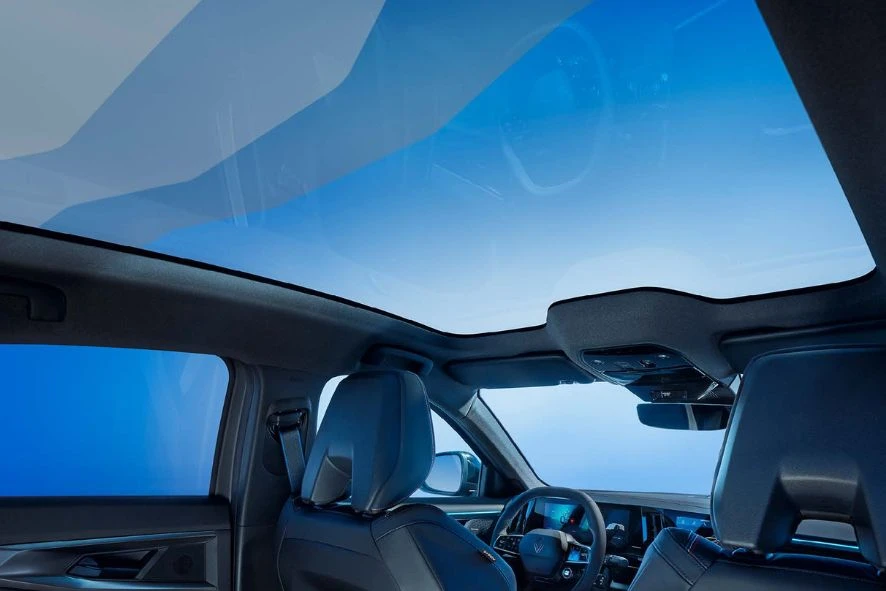 At almost 1m2, the solarbay®1 opacifying panoramic glass roof darkens and lightens on demand, via voice or manual control. Maintain your thermal comfort in summer and winter by selecting one of the 4 opacifying modes.